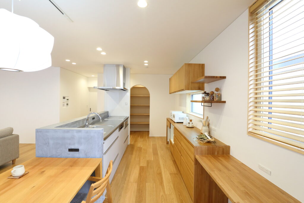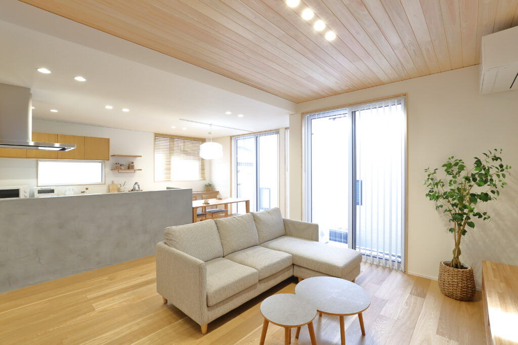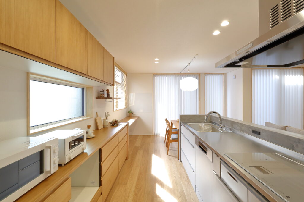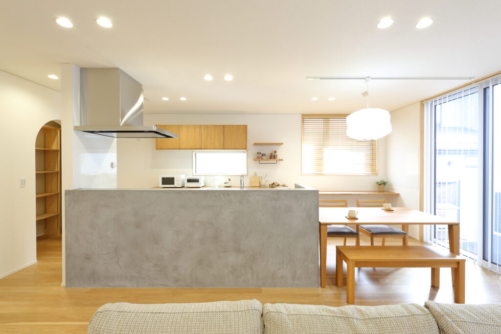 陽の当たる方角はお隣に囲まれている土地で、いかに明るいLDKを実現するかが課題でした。